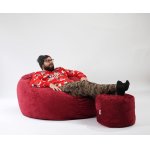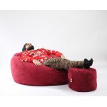 Fotoliu Pufrelax king size si otoman sour cherry umplut cu fulgi de burete memory mix