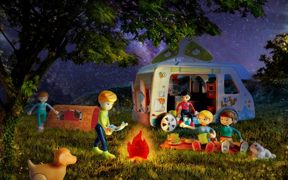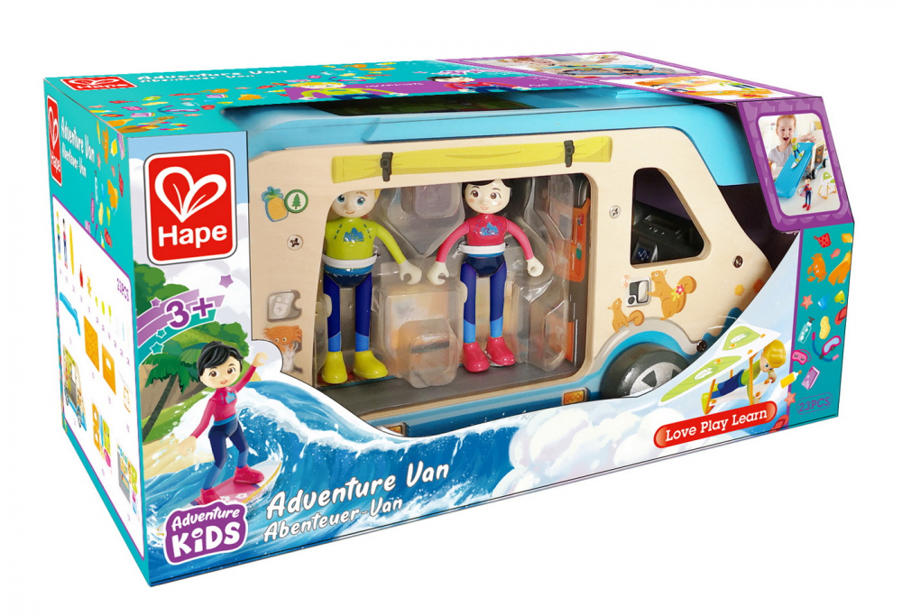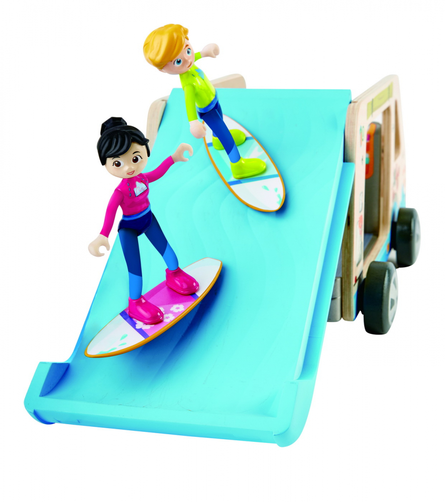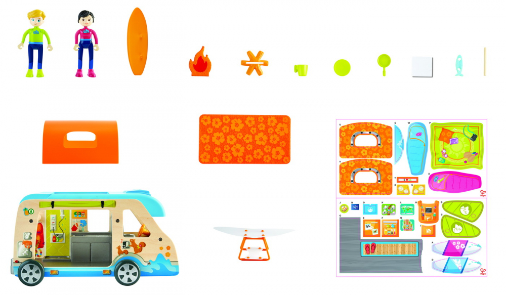 Iesiti intr-o aventura uimitoare un set de picnic, surfing cu aceasta furgoneta, usor de transportat, completata cu papusi si accesorii!