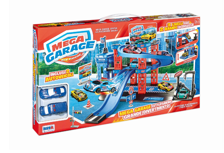 Cu 3 etaje de distractie si explorare, acest garaj este echipat cu 2 rampe pentru masini si un lift manual, perfect pentru a transporta masinutele intre etaje.