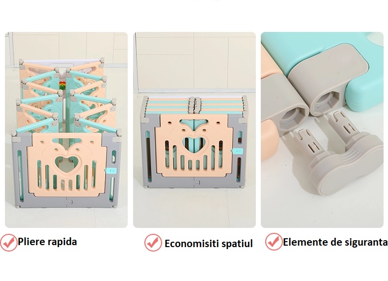 - Usor de montat si intretinut, garduletul este compus din bucati care formeaza un spatiu de joaca sigur pentru copii.