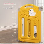 Gardulet loc de joaca Nichiduta Garden Duck Yellow cu Poarta siguranta, Picioruse antiderapante, Pliabil, Margini rotunjite, Organizator, Cos de baschet, Salteluta de joaca si 120 de bile incluse