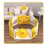 Garduletul pentru activitati pentru copii este de dimensiuni mari si poate fi, de asemenea, asamblat cu usurinta, fara unelte.Acesta contine un organizator pentru depozitarea jucariilor,covoras din spuma ,bile colorate,cos de bashet si mingie.