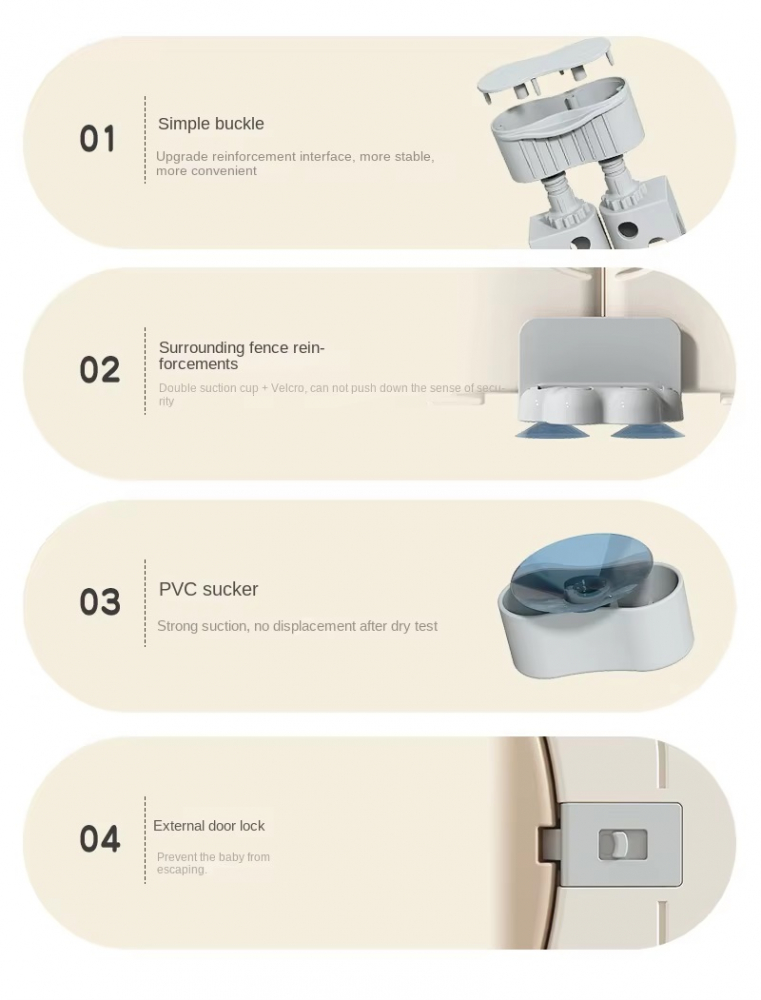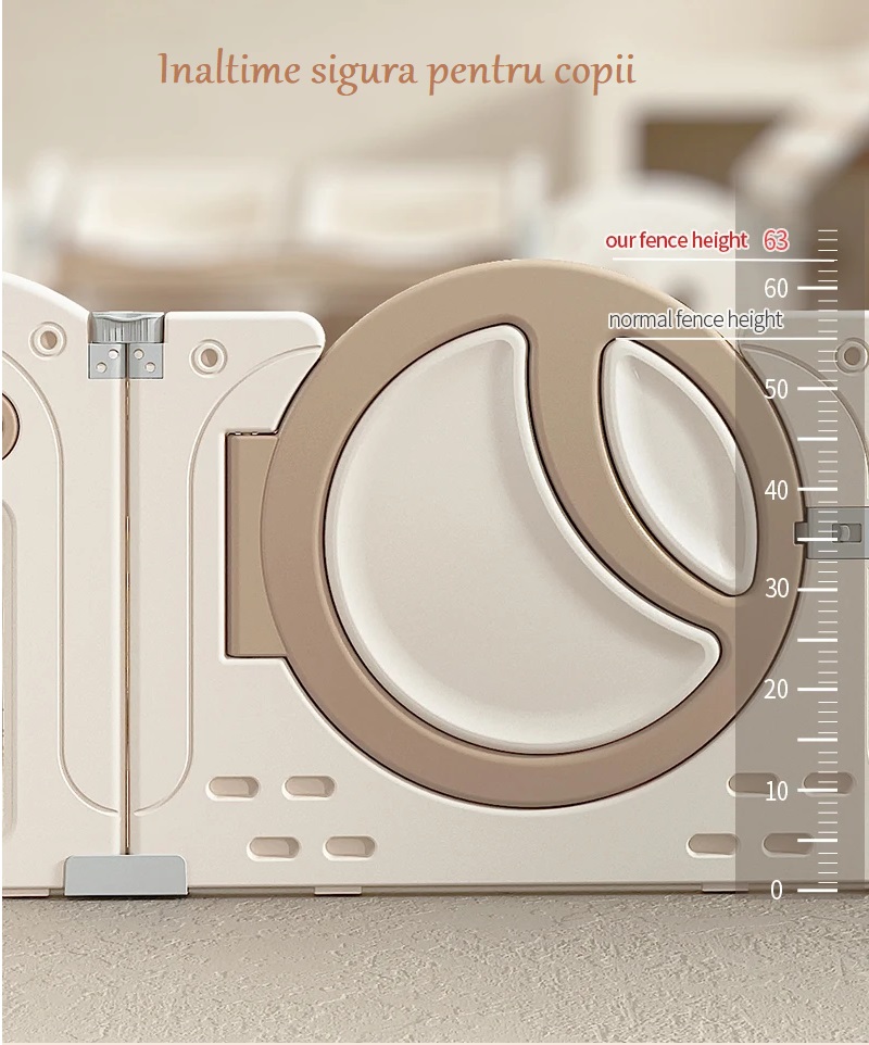 - Usa cu blocare de siguranta asigura ca tarcul ramane bine inchis, astfel incat sa stiti copilul in siguranta in timp se joaca.