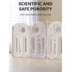 Stabilitate maxima: prevazut cu picioare de cauciuc antiderapante si un sistem de fixare la baza panourilor care impiedica miscarea sau rasturnarea tarcului.