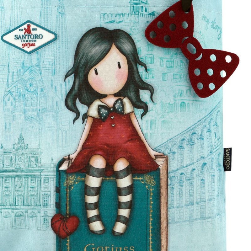 Mica supriza din partea Santoro este stickerul Gorjuss agatat de geanta.