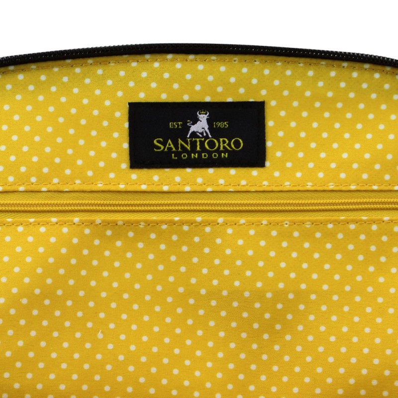 Geanta cu barete textile Gorjuss Bee Loved se deschide cu ajutorul unui fermoar cu efect vintage, iar interiorul sau este spatios si cuprinde un buzunar cu fermoar si doua buzunare spatioase. Interiorul este galben cu buline albe.