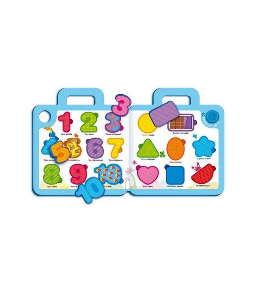 Copiii pot aranja piesele de puzzle, pot numara animalele din imagini, pot recunoaste si denumi diversele cifre si forme geometrice, exersand in mod distractiv limba engleza.
