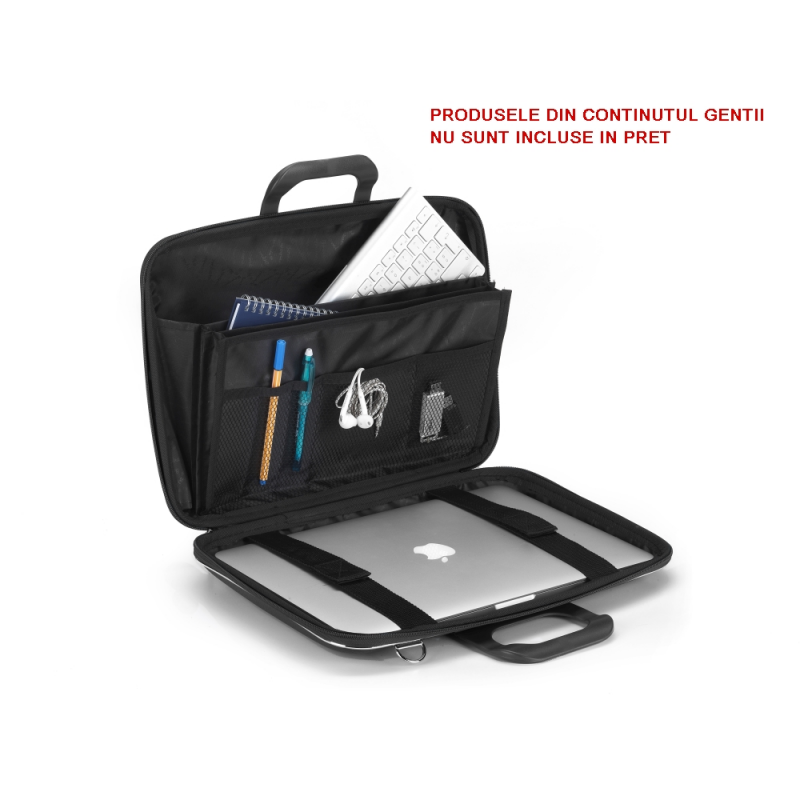 Geanta de lux business/laptop 15" medio Black&White, in interior este prevazuta cu doua curele cu prindere de tip velcro, oferind o protectie suplimentara pentru laptopul sau tableta ta.