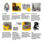 Poate fi folosit atat ca geanta ce se ataseaza la carucior cat si ca geanata independenta. Este perfect ca accesoriu pentru parintii activi fiind unisex.