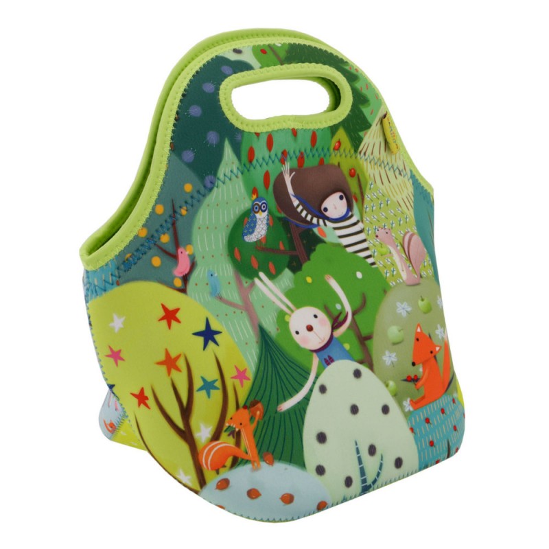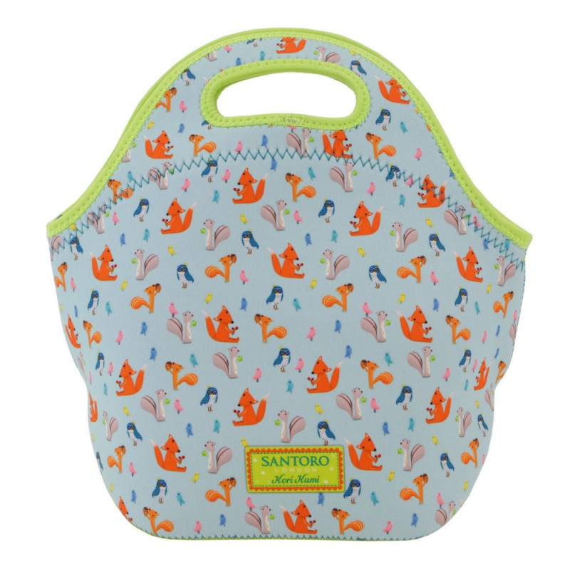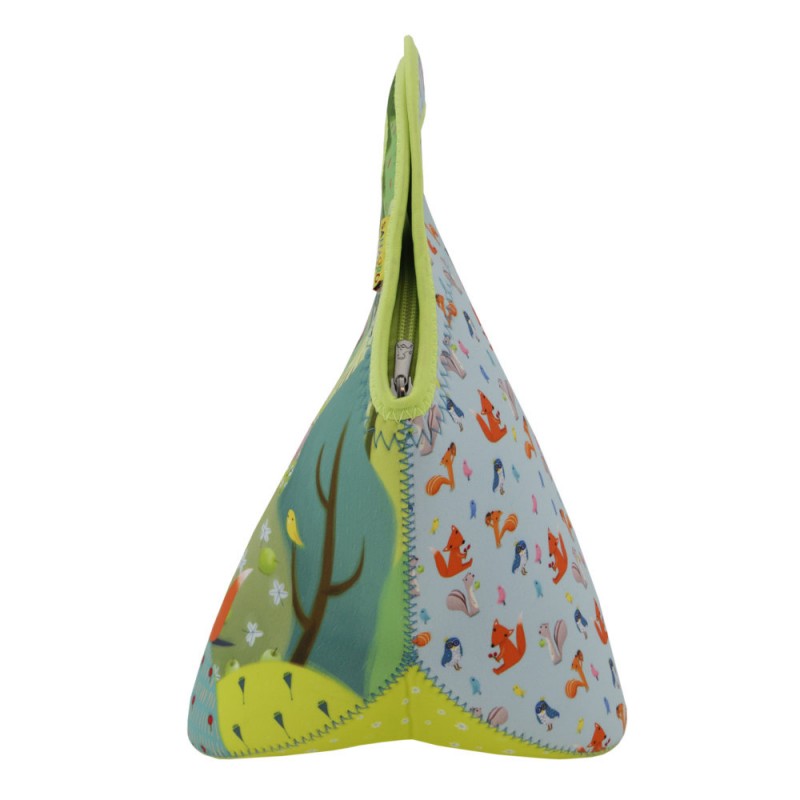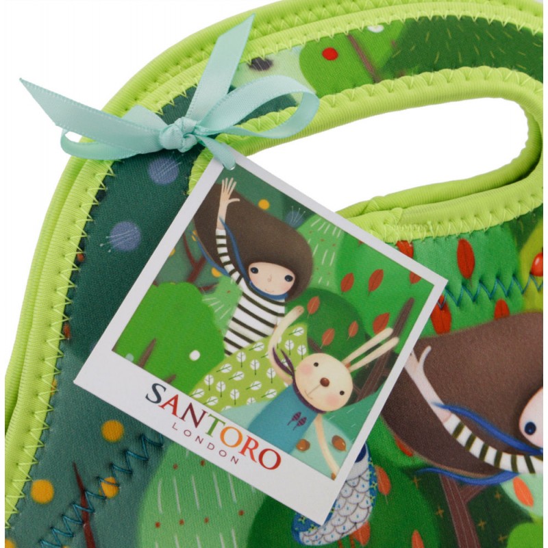 Geanta pranz Kori Kumi Toodle Pip de la Santoro va fi modalitatea preferata de tine pentru a-ti tine si transporta mancarea sau diverse obiecte la scoala sau la serviciu. Geanta este confectionata din neopren rezistent, cu manere rigide si decorata cu simpatica tema Kori Kumi Toodle Pip. Aceasta pune in evidenta elemente din natura, predominand mai mute nuante de verde, portocaliu si maro. Simpatica fetita din colectia Kori Kumi Toodle Pip de la Santoro este ilustrata pe partea din fata a gentii, iar partea din spate este imprimata cu multe animale colorate (vulpite, veverite, bufnite, pasarele)