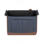 Geanta interschimbabilă, modernă, cu detalii exterioare din piele, are un compartiment principal mare pentru depozitarea scutecelor și a sticlelor.