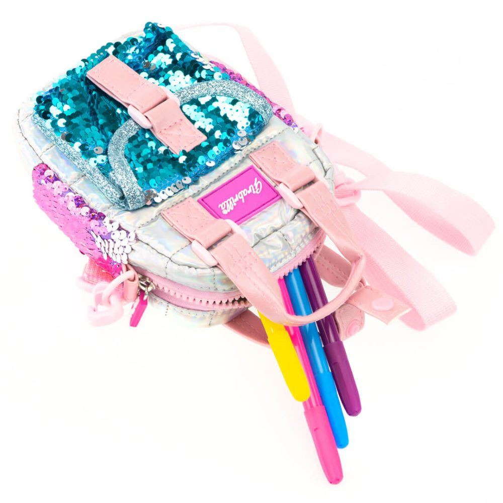 Gentuță Girabrilla Puffer – geantă matlasată pentru copii cu paiete și efect irizat