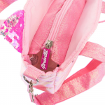 Dispune de un buzunar frontal cu paiete, un compartiment principal cu fermoar și curea de umăr reglabilă, fiind ideală pentru plimbări scurte, timp liber sau cadouri surpriză.