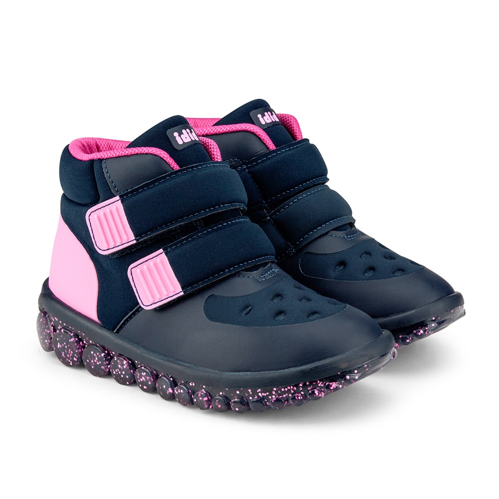 Ghete sport cu design actual si creativ, ideale pentru aventurile zilnice ale copiilor. Confectionate dintr-un material confortabil, cu captuseala textila moale si brant Fisioflex, sunt practice si usoare, conferind senzatia de mers descult. Talpa antiderapanta Rolller aduce un plus de confort prin designul sau ce urmareste miscarile picioarelor.