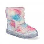 Ghete confectionate din blana sintetica cu talpa transparenta si aplicatii glitter holografic.