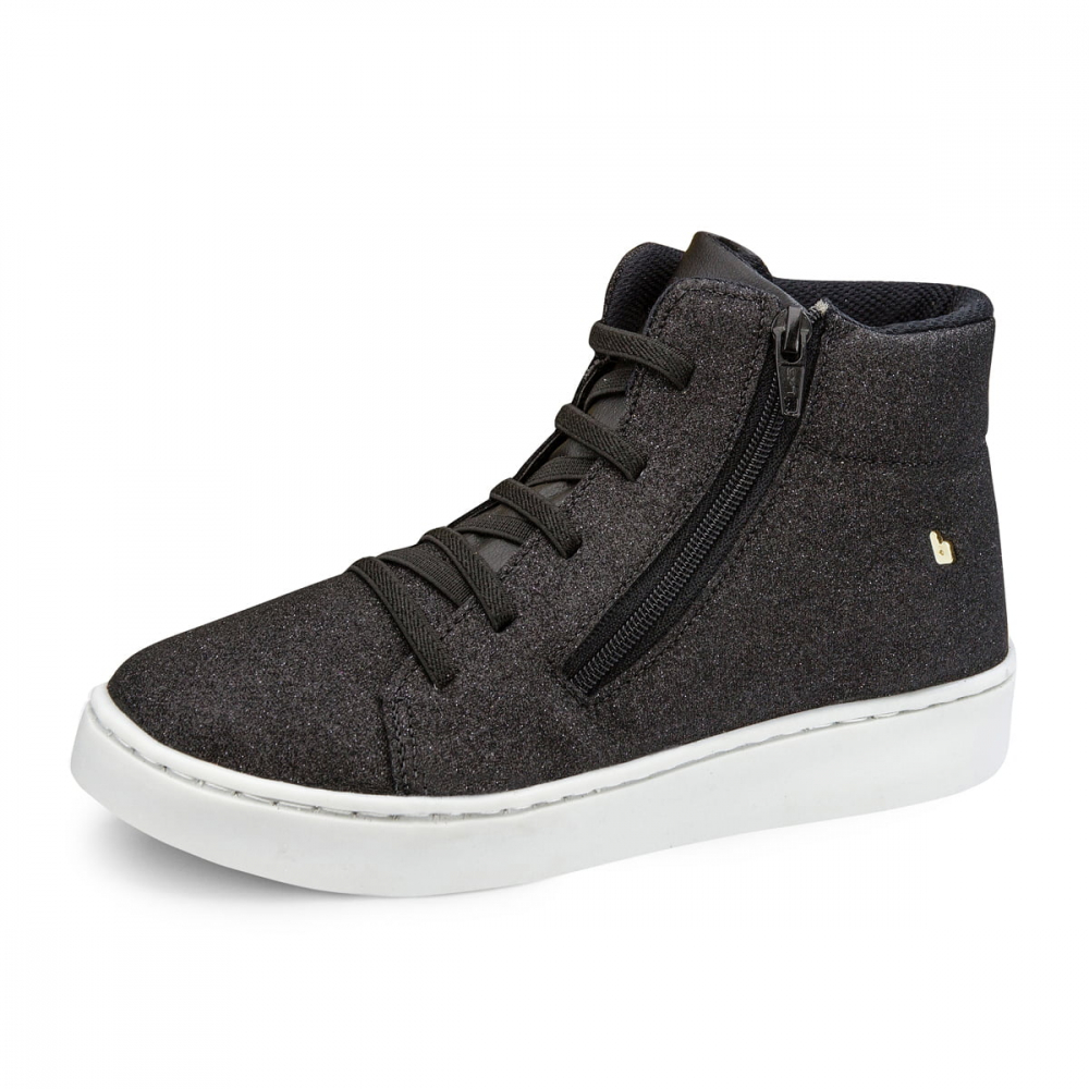 Ghete negre cu sclipici, siret si fermoar lateral, pentru o incaltare mai usoara. Branturile din piele ajuta piciorul sa respire si ii asigura confort. Au o talpa usoara, care impiedica deraparea.