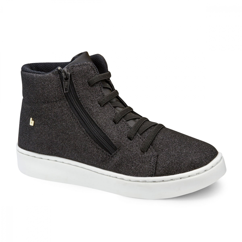 Ghete negre cu sclipici, siret si fermoar lateral, pentru o incaltare mai usoara. Branturile din piele ajuta piciorul sa respire si ii asigura confort.