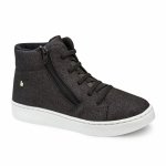 Ghete negre cu sclipici, siret si fermoar lateral, pentru o incaltare mai usoara. Branturile din piele ajuta piciorul sa respire si ii asigura confort. Au o talpa usoara, care impiedica deraparea.