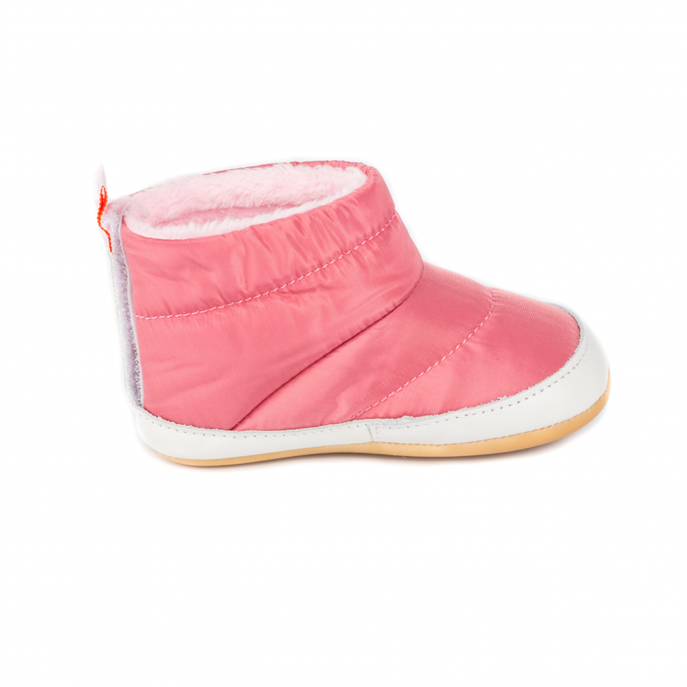 Ghete pentru bebelusi imblanite cu brant din piele. Materialul de la exterior este prevazut cu tehnologie DROP, care nu permite apei sa intre, dar lasa piciorul sa respire in voie.