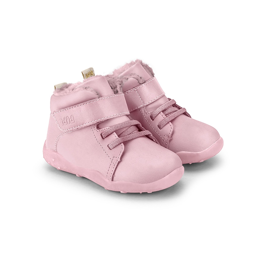 Confectionat din piele, inchidere cu siret elastic si velcro pentru o fixare mai usoara, cu captuseala din blanita pentru a mentine piciorusele calde.