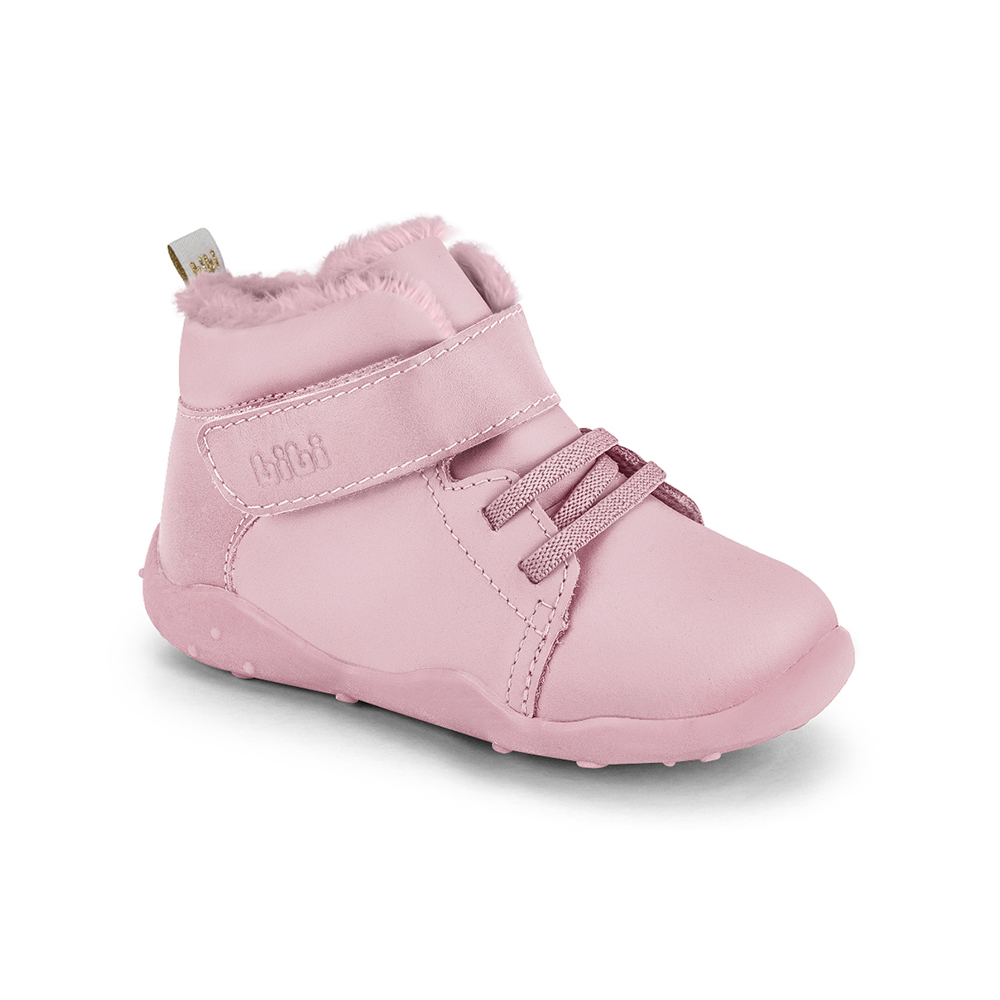 Confectionat din piele, inchidere cu siret elastic si velcro pentru o fixare mai usoara, cu captuseala din blanita pentru a mentine piciorusele calde.