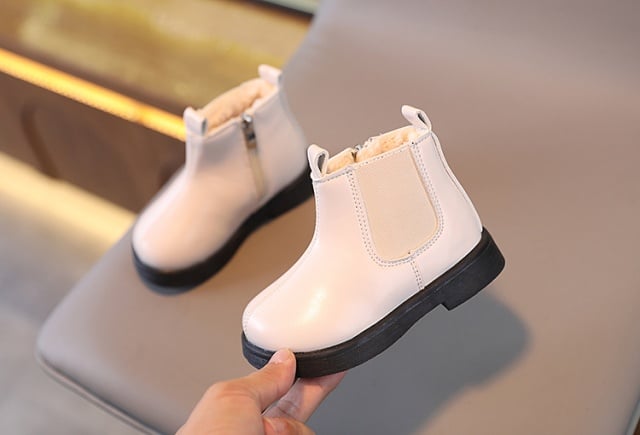 Ghete pentru copii, confectionate din piele ecologica de culoare ivoire, perfecte pentru sezonul rece.
