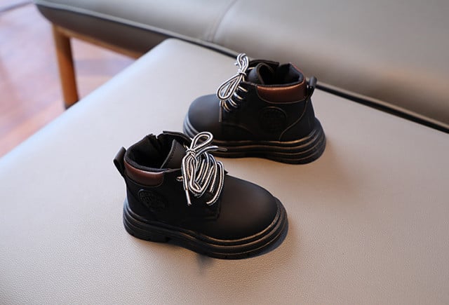 Ghete neimblanite pentru baietei, din material tip piele ecologica, se inchid cu siret si cu fermoar intr-o parte.