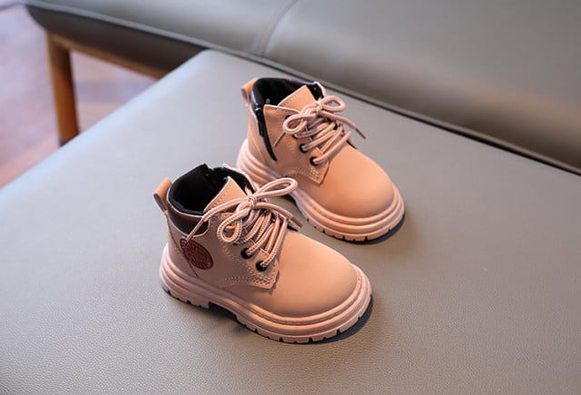 Ghete neimblanite pentru fetite, din material tip piele ecologica, se inchid cu siret si cu fermoar intr-o parte.