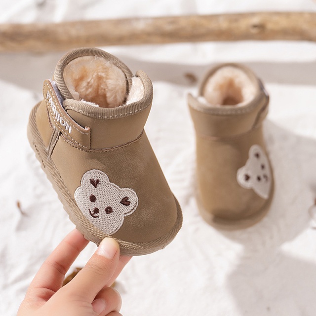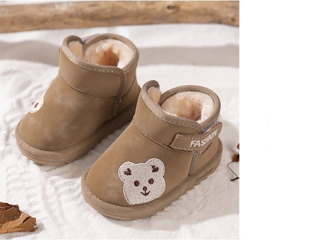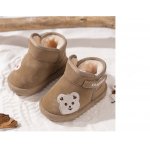 Ghetute maro pentru bebelusi, imblanite si decorate cu un simpatic ursulet brodat.