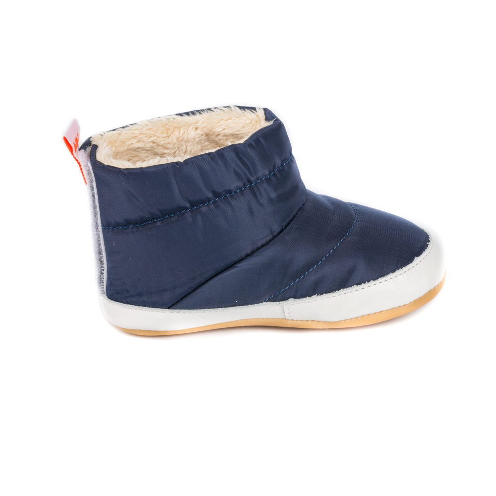 Ghete pentru bebelusi imblanite cu brant din piele. Materialul de la exterior este prevazut cu tehnologie DROP, care nu permite apei sa intre, dar lasa piciorul sa respire in voie.