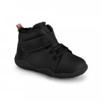 Confectionat din piele, inchidere cu siret elastic si velcro pentru o fixare mai usoara, cu captuseala din blanita pentru a mentine piciorusele calde.