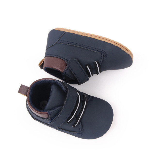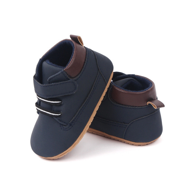 Ghetute inalte pentru bebelusi din material tip piele ecologica, se inchid cu sireturi din elastic si bareta cu arici intr-o parte.