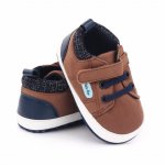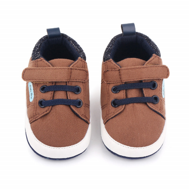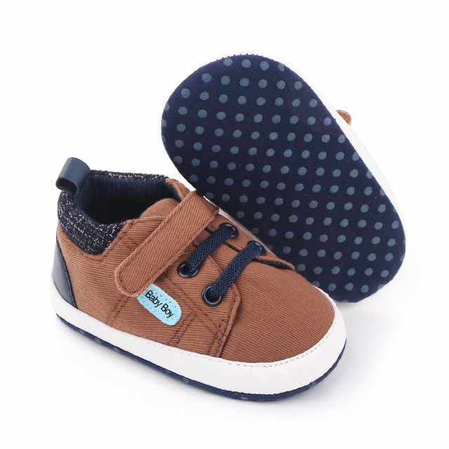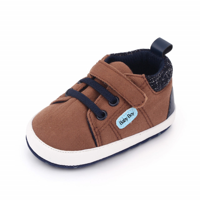 Ghetute pentru bebelusi din material textil, cu inscriptie "Baby Boy" in laterala, cu insertie bleumarin la spate. Se inchid cu sireturi din elastic si bareta cu arici.
