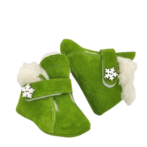 Ghetute pentru copii Barefoot Baby fox Bit Fulg de nea Nappa Verde cu bareta, imblanite, din piele naturala marime 17