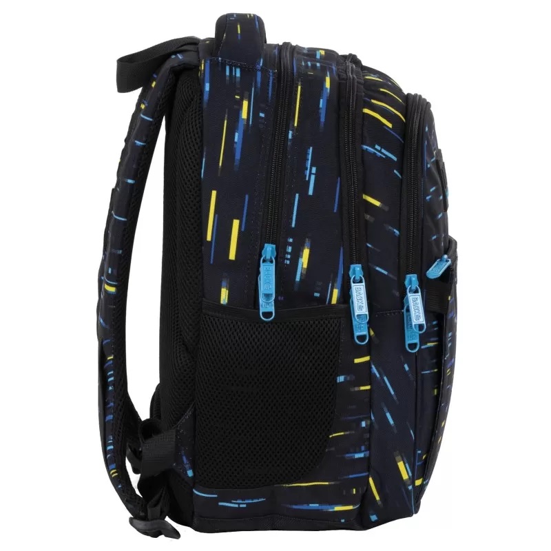 Acest rucsac este imprimitat cu diverse modele multicolore, iar ghiozdanul este predominant negru, facandu-l cadoul ideal pentru baieti scolari si prescolari de diverse varste.