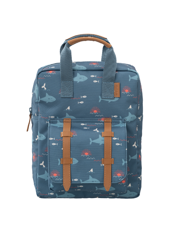 Ghiozdanelul de la Fresk, cu model Rechin, este potrivit atat pentru aventurile de la gradinita, cat si pentru plimbarile in parc! Desi este micut (28x22x8 cm), tocmai pentru a putea fi purtat cu usurinta in spate de cei mici, ghiozdanul este foarte incapator si eficient compartimentat.