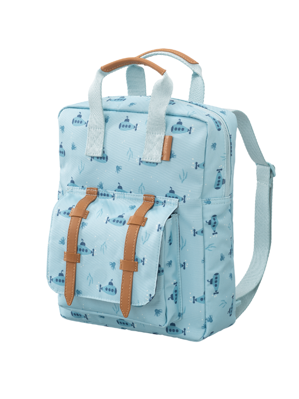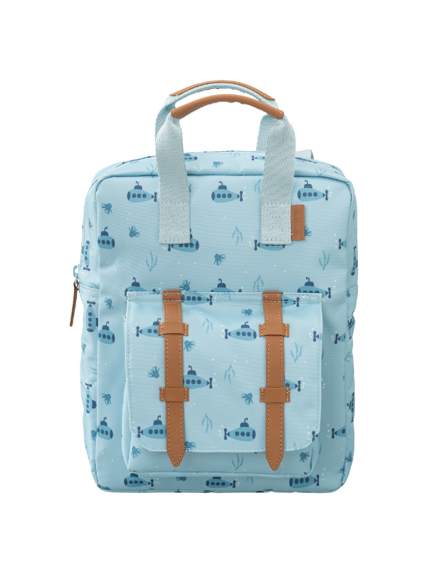 Ghiozdanelul de la Fresk, cu model Submarine, este potrivit atat pentru aventurile de la gradinita, cat si pentru plimbarile in parc! Desi este micut (28x22x8 cm), tocmai pentru a putea fi purtat cu usurinta in spate de cei mici, ghiozdanul este foarte incapator si eficient compartimentat.
