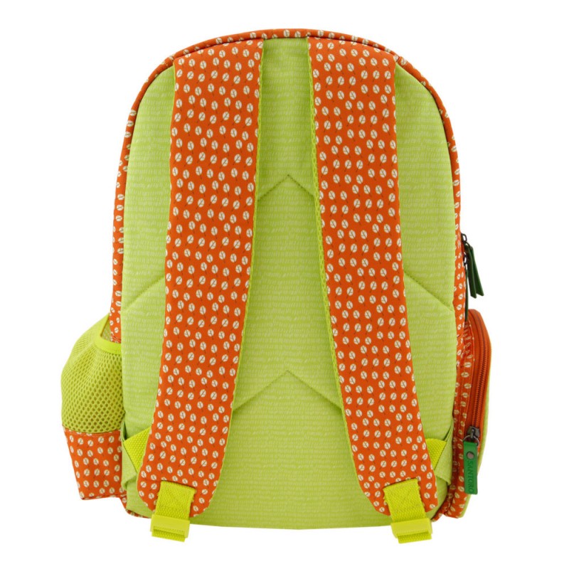 Delicat detaliat cu tematica Toodle Pip, rucsacul este imprimat cu frunze într-o paletă bogată de culori de portocaliu și verde.