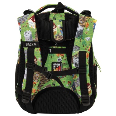 * Rucsacul de scoala din colectia Game Level ii va incanta pe jucatori! Este o combinatie de pixeli, verdeata intensa si personaje amuzante facute din placi patrate, care calatoresc prin lumea fascinanta si colorata a jocului.