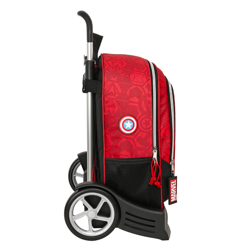 Ghiozdanul cu troler evolution scoala Avengers are un compartiment foarte incapator, cu fermoar cu dublu sens si usor de folosit si un buzunar frontal spatios.