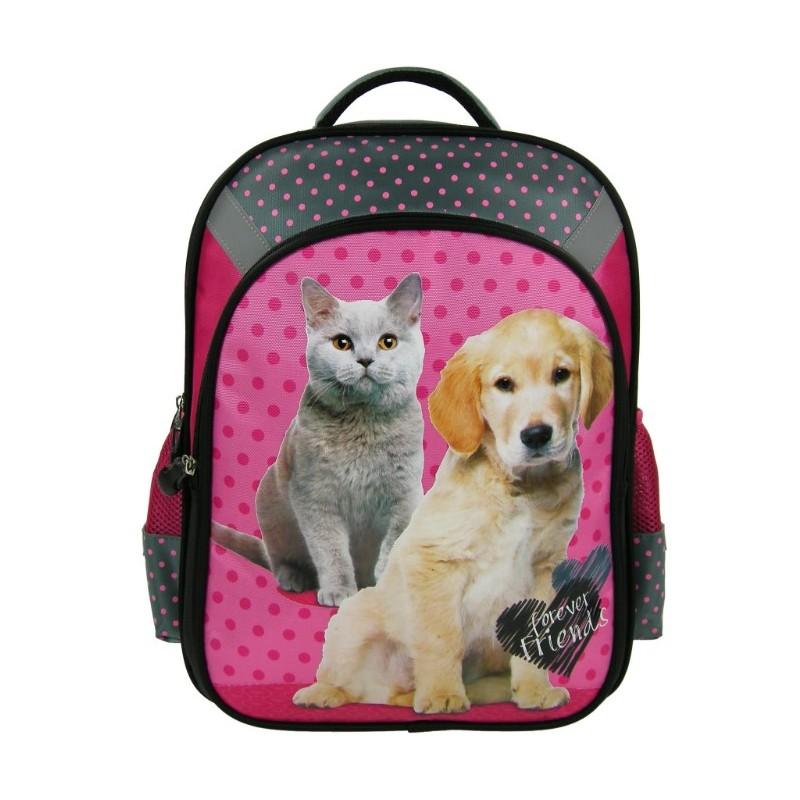 Ghiozdan scolari si prescolari, Derform Cleo and Frank 14, 3 Compartimente, cu pisicuta si catel pentru fetite