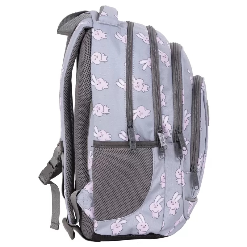 Ghiozdan scolari si prescolari Derform BackUP 4 compartimente gri cu iepurasi