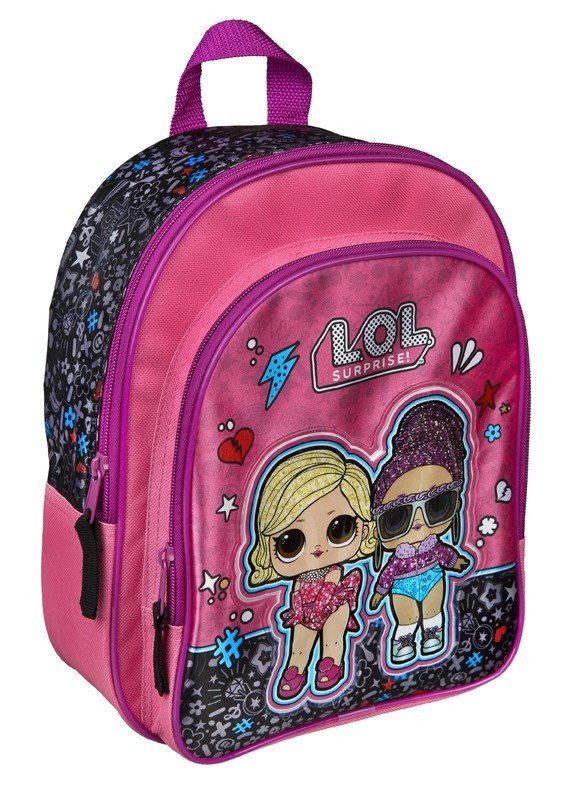 Rucsac LOL cu buzunar frontal, plasture PVC cu sclipici, poliester, volum cca. 8 l.