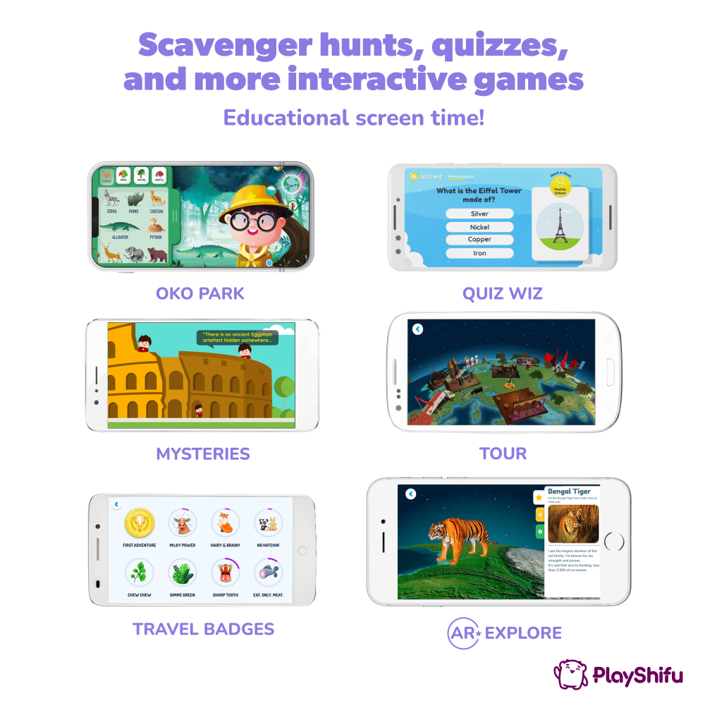 Plin de povestiri vizuale, muzica si interactiuni vocale, chestionare despre lume, puzzle-uri si provocari. (Fara granie si fara denumiri mentionate pe glob.)