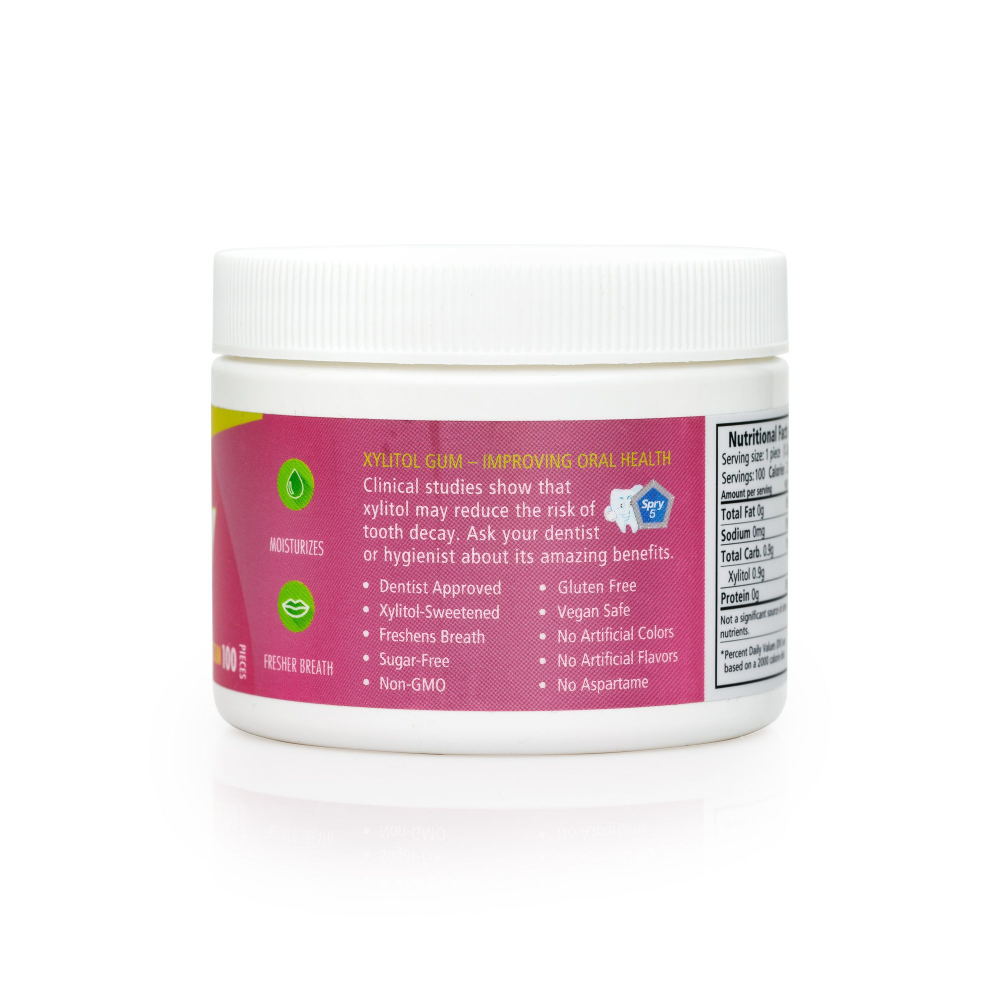 Guma de mestecat cu xylitol Spry ingrediente naturale aroma bubble gum borcan 100 bucati