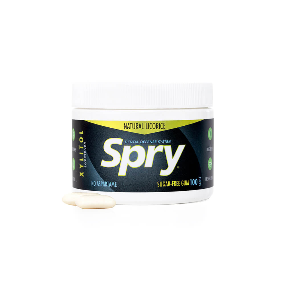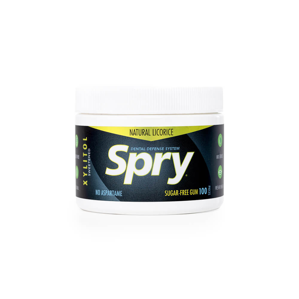Guma de mestecat cu xylitol Spry ingrediente naturale aroma lemn dulce borcan 100 bucati