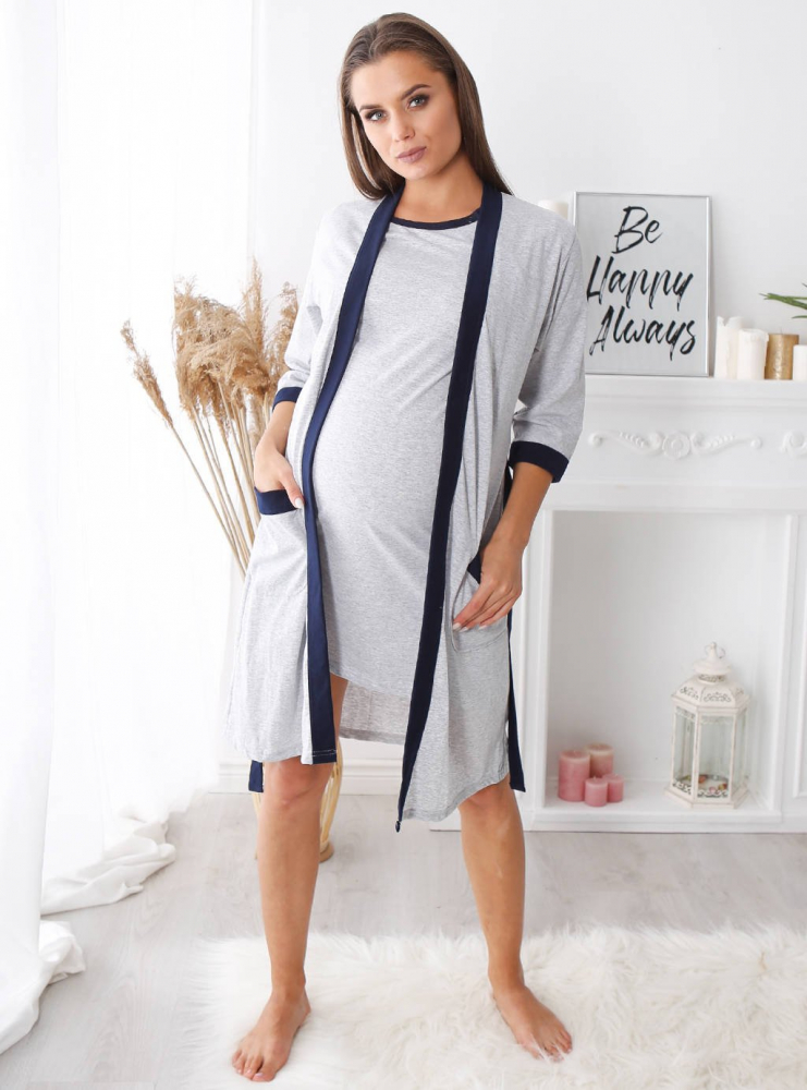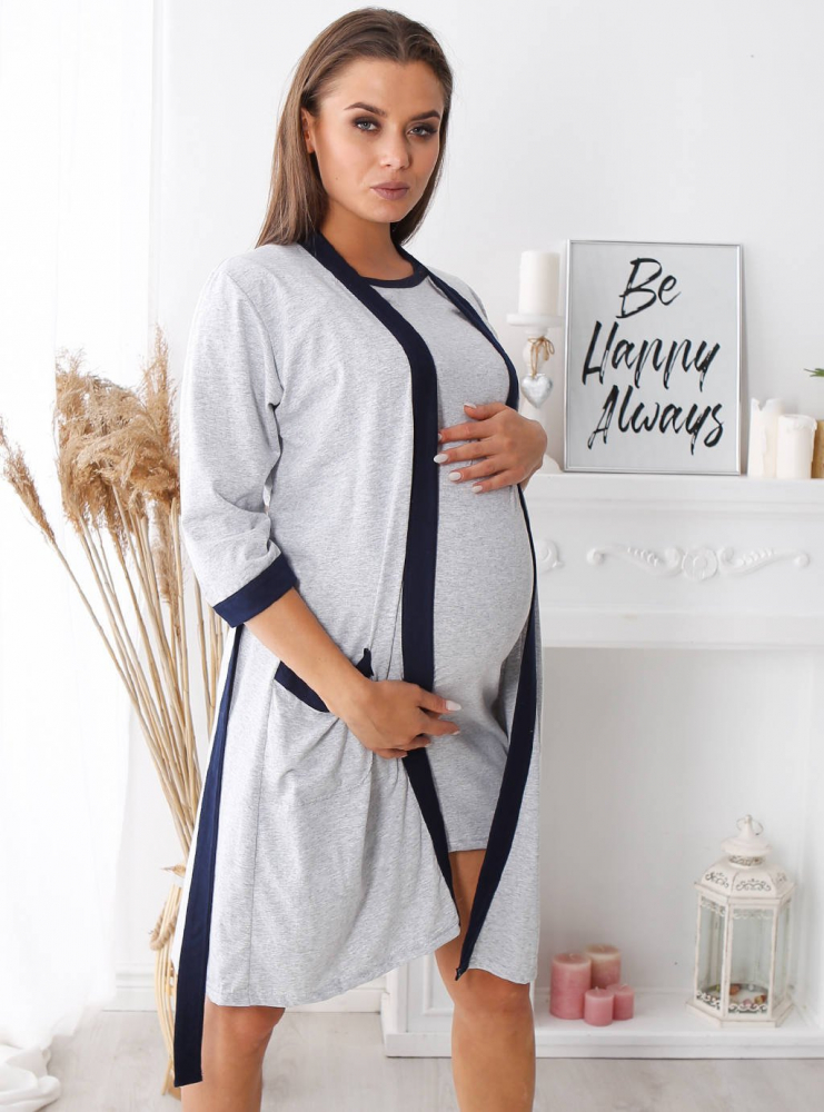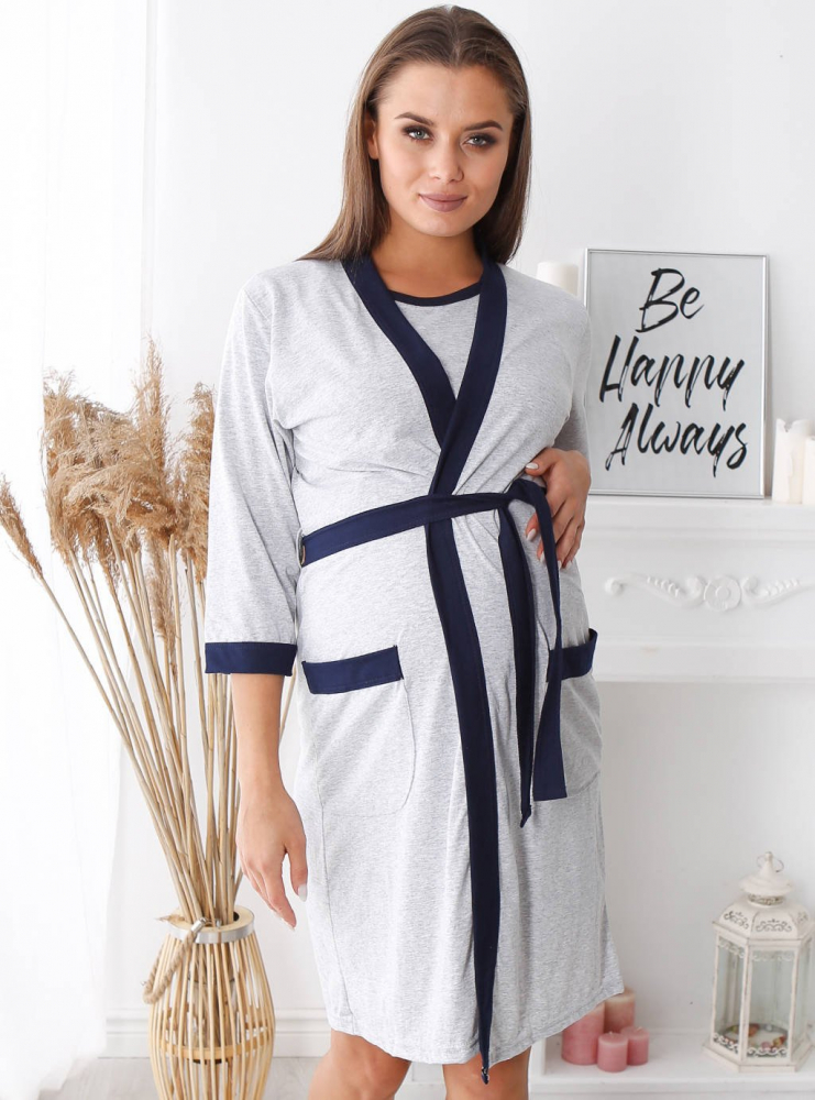 Halat din bumbac pentru gravide Basic Grey / Blue L