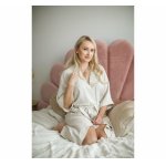 Kimonoul are 2 buzunare încăpătoare, mâneci largi 3/4 și curea de cravată.