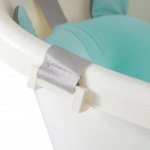 * Acest hamac se prinde de cadita cu ajutorul unor clipsuri laterale, fiind compatibil cu orice tip de cadita. Poti alege sa il fixezi in trei puncte pentru mai multa siguranta sau sa il folosesti ca pe o salteluta moale, punand mai putina apa in cadita.