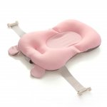 Hamac de baie pentru copii, Little Mom, design ergonomic cu fixare pe cadita in clipsuri laterale, material cu uscare rapida umplut cu bilute mici de poliester, dimensiune 76 x 51 cm, Baby Pink